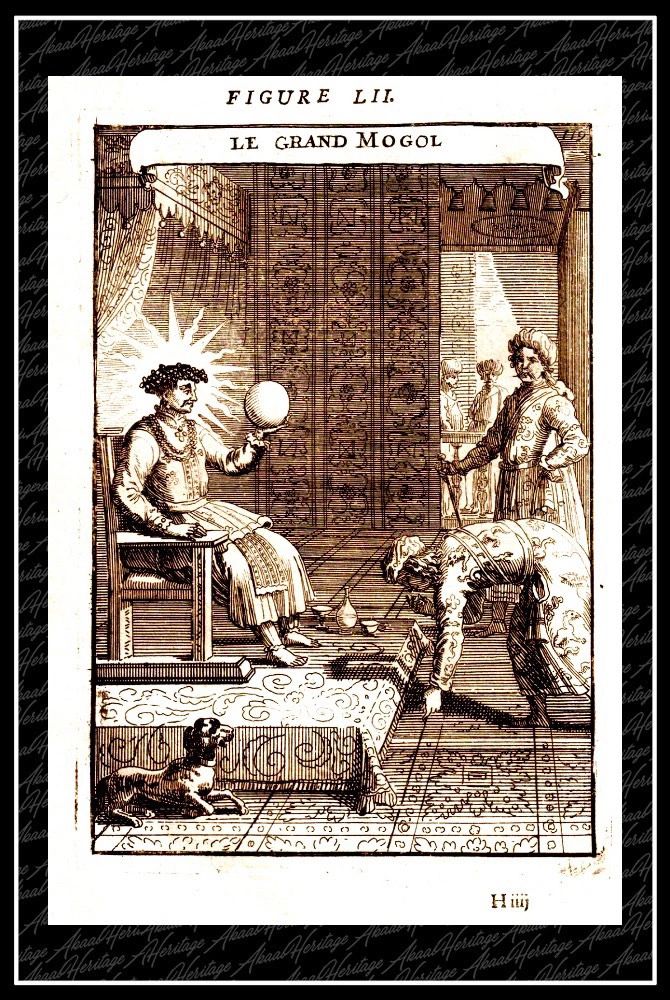 The Great Mughal, very early copperplate engraving dated c1680s Printed in France.
