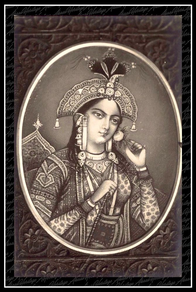 Mumtaz Mahal real photo postcard of an Indian miniature painting. Dated c1900s